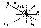 解:物体受力平衡时,无论如何建立坐标系,两个坐标轴方向的合力应都是零.以A为原点,以OA方向和垂直于OA方向建立坐标系,可以看出,该力若沿F1方向和F4方向球A受力不可能平衡,所以该力不可能沿F1方向和F4方向.