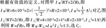 如图甲和乙分别表示正弦脉冲波和方波的交变电流与时间的变化关系.若使这两种电流分别通过两个完全相同的电阻,则经过1 min的时间,两电阻消耗的电功之比W甲∶W乙为