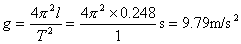 | 此单摆的周期T=1 s.由单摆周期公式