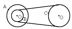 在图中所示的皮带传动装置中,轮A和B同轴,A、B、C分别是三个轮边缘的质点,且