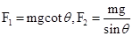 如图所示,重物的质量为m,轻细绳AO和BO的A端、B端是固定的。平衡时AO是水平的,BO与水平方向的夹角为。AO的拉力F1和BO的拉力F2的大小是( )![]()