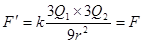 当Q1增大到3倍时,Q2增大为原来的3倍,而距离增大到原来的3倍时