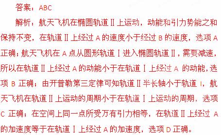 B£®ÔÚ¹ìµÀ¢òÉϾ¹ýAµÄ¶¯ÄÜСÓÚÔÚ¹ìµÀ¢ñÉϾ¹ýA µÄ¶¯ÄÜ