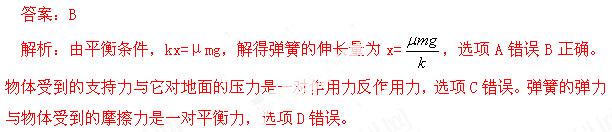 D.弹簧的弹力与物体受到的摩擦力是一对作用力与反作用力