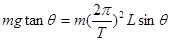 在如图所示的圆锥摆中,已知绳子长度为L ,绳子转动过程中与竖直方向的夹角为θ ,试求小球做匀速圆周运动的周期。
