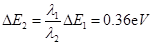 氦氖激光器能产生三种波长的激光,其中两种波长分别为λ1=0.6328μm,λ2=3.39μm。已知波长为λ1的激光是氖原子在能级间隔为ΔE1=1.96eV的两个能级之间跃迁产生的。用ΔE2表示产生波长为λ2的激光所对应的跃迁的能级间隔,则ΔE2的近似值为