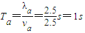 解答:解:从图中可以看出两列波的波长分别为λa=2.5m,λb=4.0m,