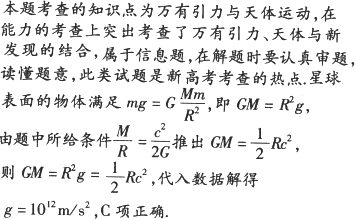 (其中c为光速,G为引力常量),则该黑洞表面重力加速度的数量级为