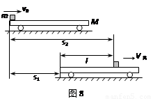 物块滑上小车后,受到向后的摩擦力而做减速运动,小车受到向前的摩擦力而做加速运动,因小车足够长,最终物块与小车相对静止,如图8所示。由于“光滑水平面”,系统所受合外力为零,故满足动量守恒定律。