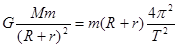 天宫一号目标飞行器在地球轨道上作匀速圆周运动,离地高度为r,已知地球质量为M,地球半径为R,万有引力恒量为G,它绕地球一周的时间为____________;当神舟八号飞船关闭发动机与天宫一号对接时,飞船的加速度为____________。
