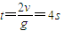解答:解:喷嘴处水流速度为20m/s,即水上抛运动的初速度为20m/s,对于从上抛到落地的过程,位移x为零,根据位移时间公式,有