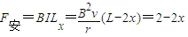 则t时刻导体棒切割的有效长度Lx=L-2x