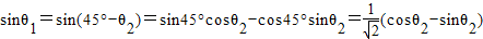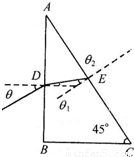 设折射率为n,在△ADE中,(90°-θ1)+(90°-θ2)+45°=180°,得θ1=45°-θ2