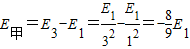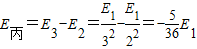 解答:解:因发出三种单色光,波长最短的应是由n=3的能级跃迁到n=1的能级发出的,波长最长的丙光应该是由n=3的能级跃迁到n=2的能级发出的,所以有: