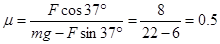 (8分)如图所示,质量m=2.2kg的金属块放在水平地板上,在与水平方向成θ=37°角斜向上、大小为F=10N的拉力作用下,以速度v=5.0m/s向右做匀速直线运动。(cos37°=0.8, sin37°=0.6,取g=10m/s2)![]()