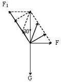如图所示,一个重为10N的砝码,用细线悬挂在O点,现在用力F拉砝码,使悬线偏离竖直方向30°时处于静止状态,此时所用拉力F的最小值为:( )![]()