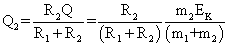 如图所示,两水平放置的、足够长的、平行的光滑金属导轨,其间距为L,电阻不计,轨道间有磁感强度为B,方向竖直向上的匀强磁场,静止在导轨上的两金属杆ab、cd,它们的质量与电阻分别为m1、m2与R1、R2,现使ab杆以初动能EK沿导轨向左运动,求cd杆上产生的热量是多少?(其他能量损耗不计)![]()