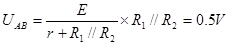 试题分析:导体棒AB切割磁感线,相当于电源,产生的感应电动势为E=BLv=1V,AB两端电压为闭合电路的路端电压,则