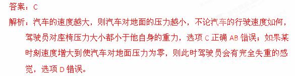 D.如果某时刻速度增大到使汽车对地面压力为零,则此时驾驶员会有超重的感觉