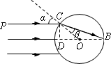 解:①光在圆柱体中的传播速度 ②设光线PC经折射后经过B点,光路图如图所示