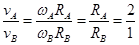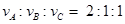 B.三质点的线速度之比VA:VB:VC =" 2:1:2"