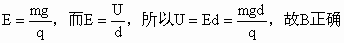提示:通过电源放置可知电容器上极板带正电,因此微粒应带负电,故 A错.因为qE=mg,所以