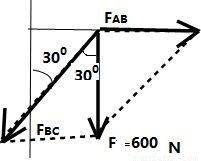 (2)B点受的绳向下的拉力F=2FT=600N,依据作用效果进行分解如图所示,