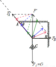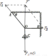 (2)保持A、O位置不变,当B点逐渐向上移动到O点的正上方的过程中,两根绳上的力的合力不变,大小始终为G,绳A上拉力的方向不变,讨论B绳上的拉力如图: