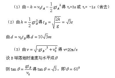 (3)B球落地时的速度大小和方向。