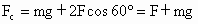如图所示,质量为m的质点,与三根相同的螺旋形轻弹簧相连,静止时,相邻两弹簧间的夹角均为120°,已知弹簧a、b对质点的作用力均为F,则弹簧c对质点的作用力大小可能为