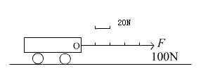 用力的图示作出作用在小车O点处水平向右的100N的拉力。