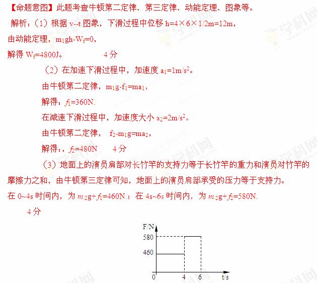 µÄÑÝÔ±¼ç²¿¶¥×¡Ò»¸ù³¤Öñ¸Í£¬ÁíÒ»ÑÝÔ±ÅÀÖÁÖñ¸Í¶¥¶ËÍê³É¸÷ÖÖ¶¯×÷ºóÏ»¬¡£Èô¸ÍÉÏÑÝÔ±×ԸͶ¥Óɾ²Ö¹¿ªÊ¼Ï»¬£¬»¬µ½¸Íµ×ʱËÙ¶ÈÕýºÃΪÁã¡£ÒÑÖªÓÐÒ»´«¸ÐÆ÷¼Ç¼Á˸ÍÉÏÑÝԱϻ¬Ê±µÄËÙ¶ÈËæÊ±¼ä±ä»¯µÄÇé¿ö¡£¸ÍÉÏÑÝÔ±ÖÊÁ¿Îªm1=40kg£¬³¤Öñ¸ÍÖÊÁ¿m