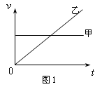 图1是两个物体做直线运动的速度—时间图象。其中,图线甲与时间轴平行,图线乙是通过坐标原点的直线。由图象可知