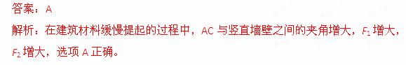 画出),用绳AC通过滑轮将建筑材料提到某一高处,为了防止建筑材料与墙壁相碰,站在地面上的工人还另外用绳CB拉住材料,使它与竖直墙面保持一定的距离L。若不计两根绳的重力,在建筑材料缓慢提起的过程中,绳AC与CB的拉力F1和F2的大小变化情况是
