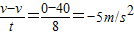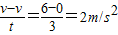【答案】分析:根据匀变速直线运动的速度时间公式求出加速度.