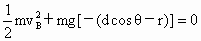 由牛顿第二定律得: 由几何关系得:d+r=L③ 由①②③三式解得:d=3L/(3+2cosθ). 在应用机械能守恒定律的一船表达式解题时,注意重力势能零参考面的选取,选得巧,可使求解过种变得容易. |