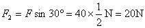 如图所示,物体放在光滑的水平面上,在大小为40N的水平力F的作用下,由西向东运动.现要用F1、F2这两个共点力(与F在同一水平面内)代替F.已知F1的方向是东偏北30°,此时F2的最小值是多少?![]()