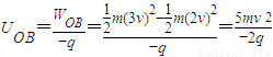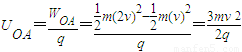 空间存在匀强电场,有一电荷量q(q>0),质量m的点电荷从O点以速率v射入电场,运动到A点时速率为2v.现有另一电荷为q、质量m的粒子以速率2v仍从O点射入该电场,运动到B点时速率为3v.若忽略重力的影响,则( )A.在O、A、B三点中,B点电势最高