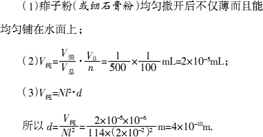 答案: (1)痱子粉(或细石膏粉) (2)2×10-5 mL (3)4×10-10 m讲析: |