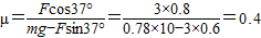 如图所示,质量为0.78kg的金属块放在水平桌面上,在与水平方向成37°角斜向上、大小为3.0N的拉力F作用下,以2.0m/s的速度向右做匀速直线运动.(sin37°=0.60,cos37°=0.80,g取10m/s2)求:(1)金属块与桌面间的动摩擦因数;