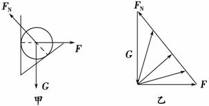 解析 小球受力如图甲所示,因挡板是缓慢移动,所以小球处于动态平衡状态,在移动过程中,此三力(重力G、斜面的支持力FN、挡板的弹力F)组合成一矢量三角形的变化情况如图乙所示(重力大小方向均不变,斜面对其支持力方向始终不变),由图可知此过程中斜面对小球的支持力不断减小,挡板对小球弹力先减小后增大,再由牛顿第三定律知B对.