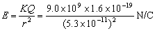 电子和质子所带的电荷量均为e = 1.6×10-19C.质子在电子轨道半径处的场强
