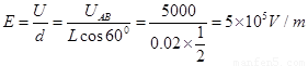 (12分)将一电荷量为2×10-5C的负电荷由A点移到B点,其电势能增加了0.1J,已知A、B两点间距为2cm,两点连线与电场方向成60°角,如图所示,问: