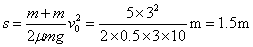 所以 (2)小车第一次碰撞后向左运动,初速度仍为v0,受到摩擦力mmg的作用,速度逐渐减小至零,负加速度大小为 小车向左运动的位移为 第一次碰撞后m的速度为v0,向右.设小车与铁块的公共速度为v1,则 mv0-Mv0=(m+M)v1