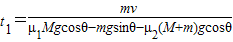 μ1Mgcosθ-mgsinθ-μ2(M+m)gcosθ=ma①