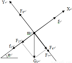 X轴方向:f=μ1Mgcosθ;f1=μ2(M+m)gcosθ;F5=G2sinθ=mgsinθ