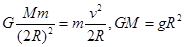 在圆轨道上运动的质量为m的人造地球卫星,它到地面的距离等于地球半径R.地面上的重力加速度为g,则