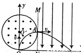如图所示,直空中有以O′为圆心,r为半径的圆柱形匀强磁场区域,圆的最下端与x轴相切于直角坐标原点O,圆的右端与平行于y轴的虚线MN相切,磁感应强度为B,方向垂直纸面向外,在虚线MN右侧x轴上方足够大的范围内有方向竖直向下、场强大小为E的匀强电场.现从坐标原点O向纸面不同方向发射速率相同的质子,质子在磁场中做匀速圆周运动的半径也为r,已知质子的电荷量为e,质量为m,不计质子的重力、质子对电磁场的影响及质子间的相互作用力.求:(1)质子进入磁场时的速度大小