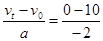 (3)设汽车刹车所用的最长时间为t,则经时间t汽车速度变为零。由vt=v0+at得: