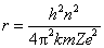 对氢原子,Z=1,令n=1,代入m、e、k、h的数值,得氢原子中核外电子运动的最小轨道半径: r1=0.53×10-10m 其他可能轨道半径为 rn=n2·r1=0.53×10-10·n2m(n=1,2,3,…) |